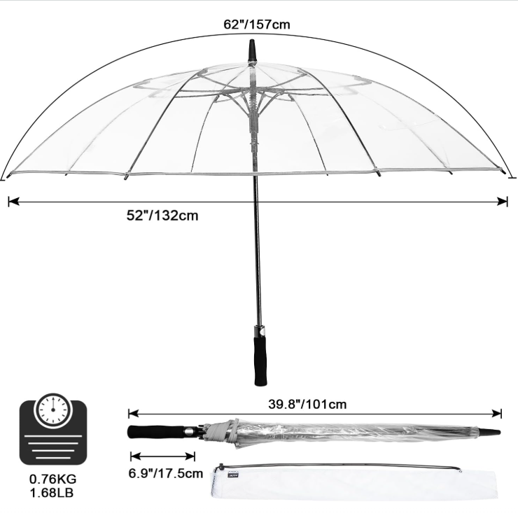 | Product | Clear Golf Umbrella Transparent Auto Open Large Stick Umbrella Oversized Windproof Waterproof with Sleeve for Women Men | ||