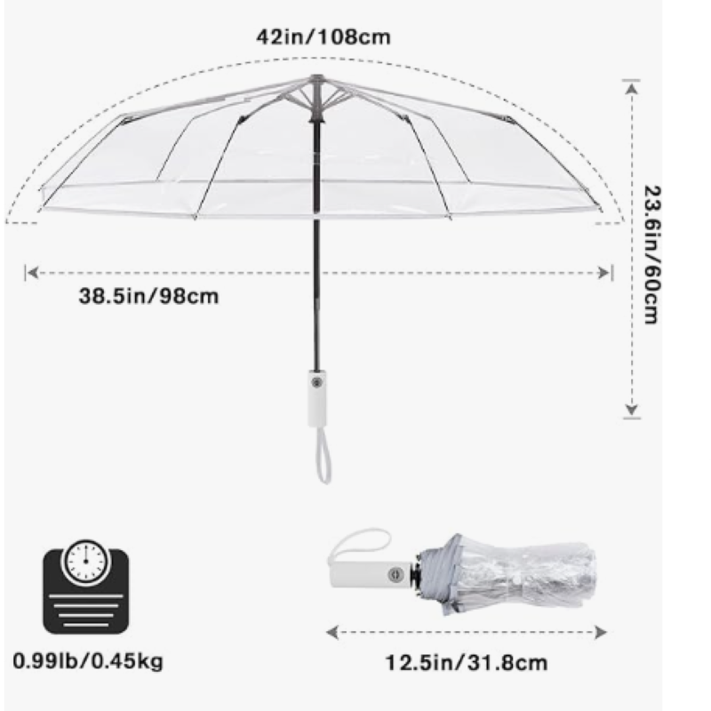 | Product | Windproof Clear Travel Umbrella - Auto Open Close, Compact & Foldable for Rain | ||