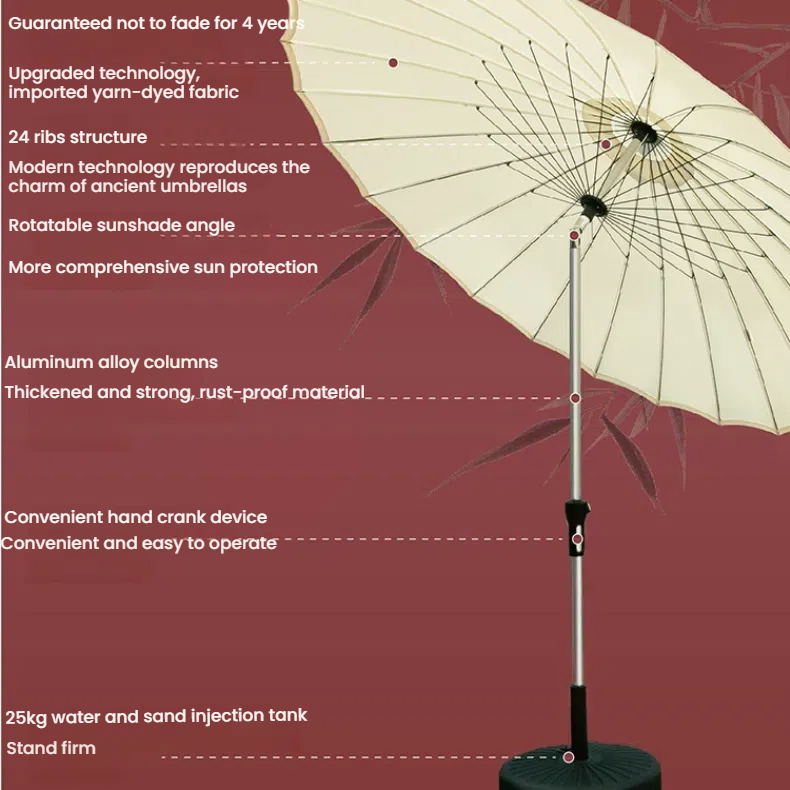 Transform your balcony, patio, garden, or poolside into a perfectly shaded oasis. Our premium 24-Rib All-Weather Patio Umbrella is engineered as the ultimate windproof patio umbrella and sun protection umbrella, offering reliable defense against harsh UV rays, sudden rain showers, and gusty winds. The innovative 45-degree tilt function allows for easy adjustment to block the sun at any angle.